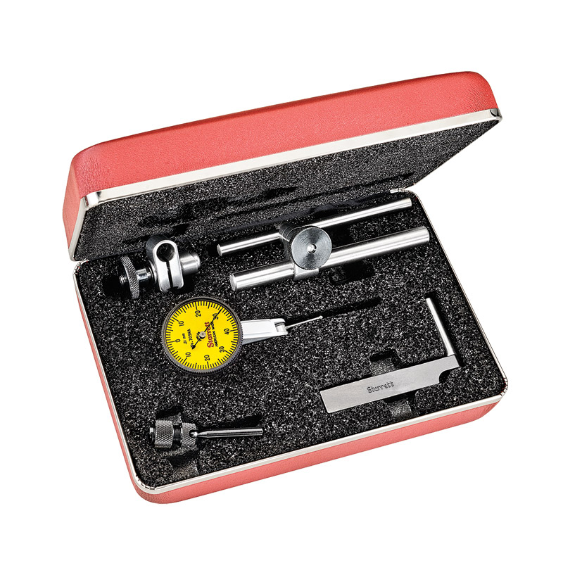 The Starrett 709 Dial Test Indicator with Dovetail Mount offers an easy to read angled head and the flexibility of three dovetail mounts. With attachments. Includes case.