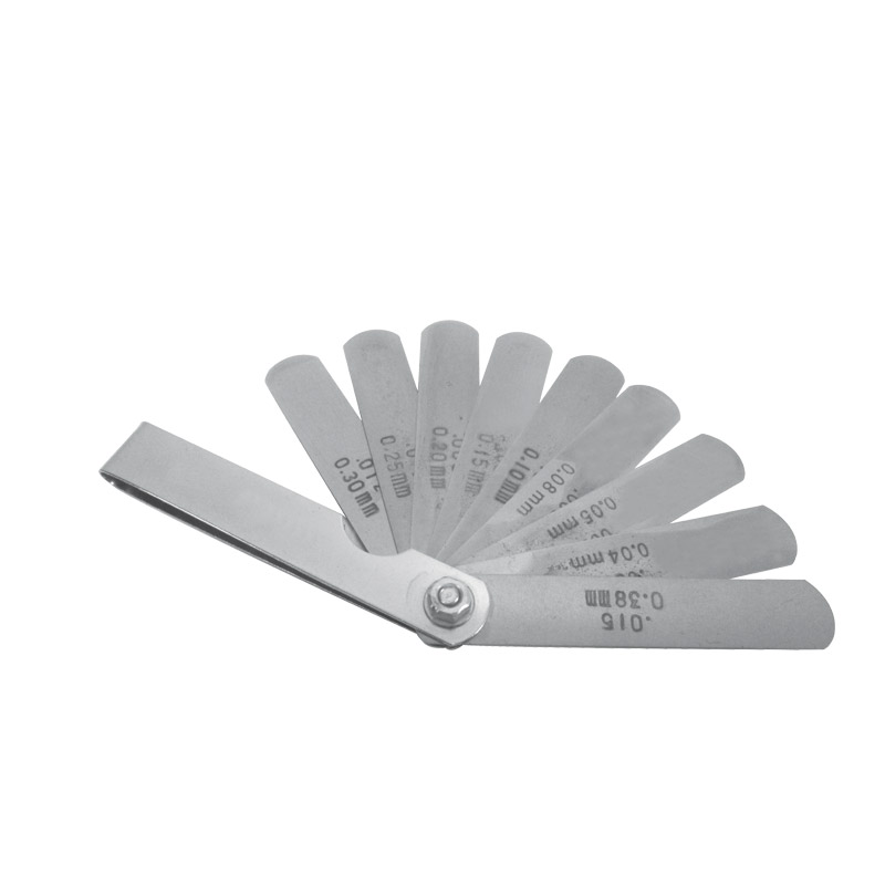 Each gage set comprised of thin polished steel blades within a steel case. Appropriate thickness clearly marked on each blade (inch and millimeter). Approximate length 3-1/2" (90mm). Used to check bearing clearance in auto industry, flatness of jigs and fixtures, adjusting spark plugs, etc.