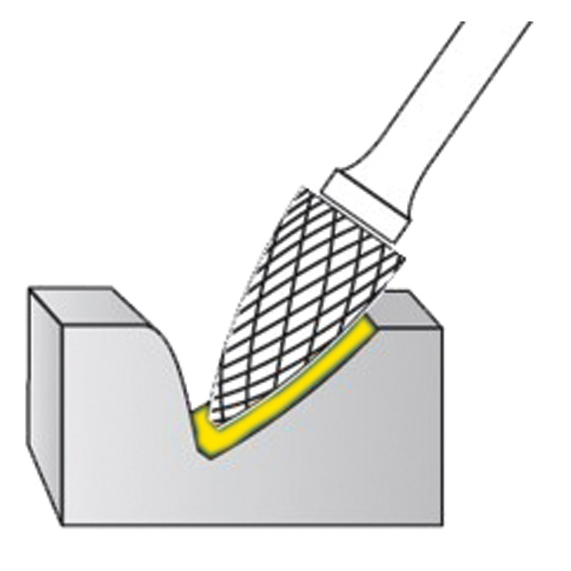 (SF) Tree Shape with Radius End. Carbide burrs are used for grinding, deburring, shaping, and weld bead removal. Double Cut burs produce a finer finish and reduces the size of the chips.