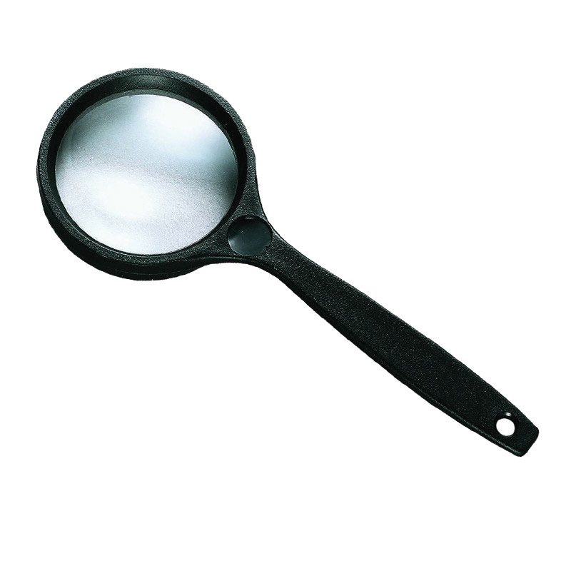 Economical and versatile magnifier for laboratory and industrial uses, for do-it-yourselfers, mechanics and inspectors. 2\" diameter with 4 power lens. Lightweight, durable 1- piece molded plastic frame.