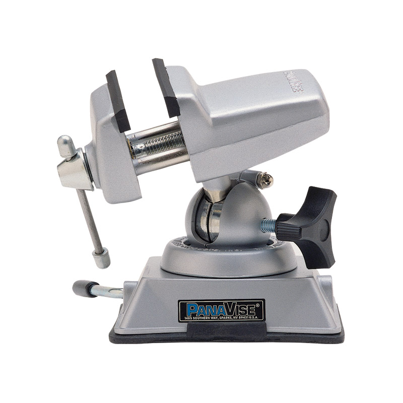 The 381 Vacuum Base PanaVise provides all of the "tilt, turn and rotate" versatility of a 301 Standard PanaVise with the convenience of added portability. A half turn of the mount lever attaches or releases the powerful suction pad and allows rapid set-ups in a variety of locations (for use on smooth, nonporous surfaces only). This combination stands 6-1/8" (157 mm) tall and weighs 2 lbs. 13 oz. (1.3kg).
