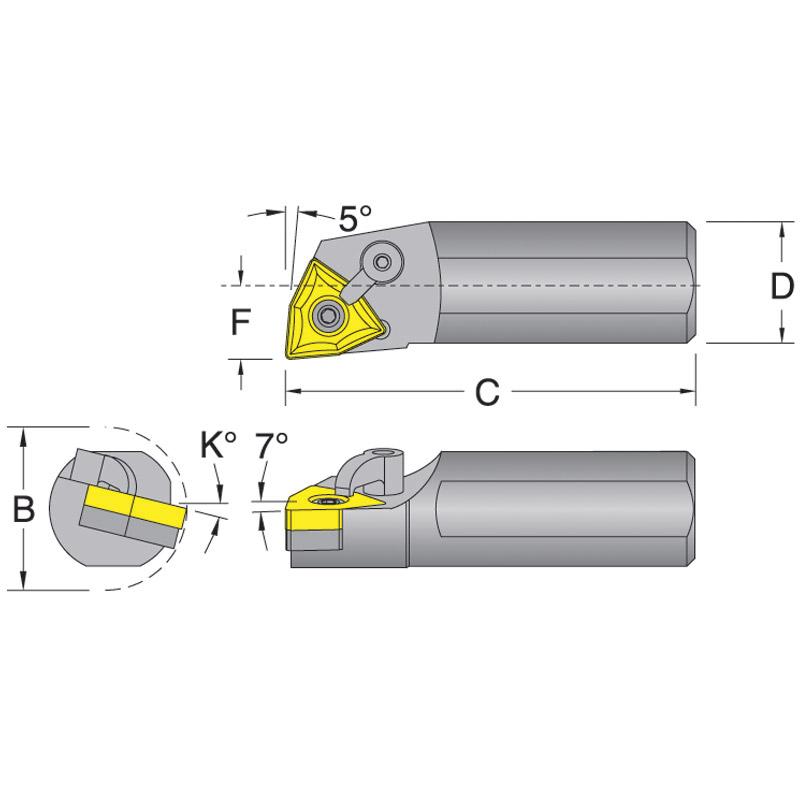 Style L - negative 5° Side & End Cutting Edge Angle for negative 80° trigon WNMG_inserts. K: 14°. Seat: IWSN-432. Lock Pin: NL-46. Clamp: CL-20. Clamp Screw: XNS-47. Picture Shown: Right Hand.