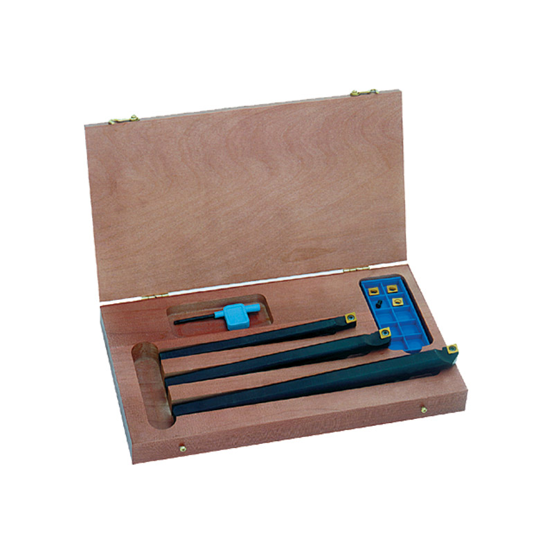 SI-SCLC System S for positive 80°. Diamond CCMT or CCGT inserts. Includes: 1/2", 5/8" & 3/4" Right Hand Boring Bars. 6 pieces CCMT-32.52 TiN. 1 Torx keys. 1 Spare screws.