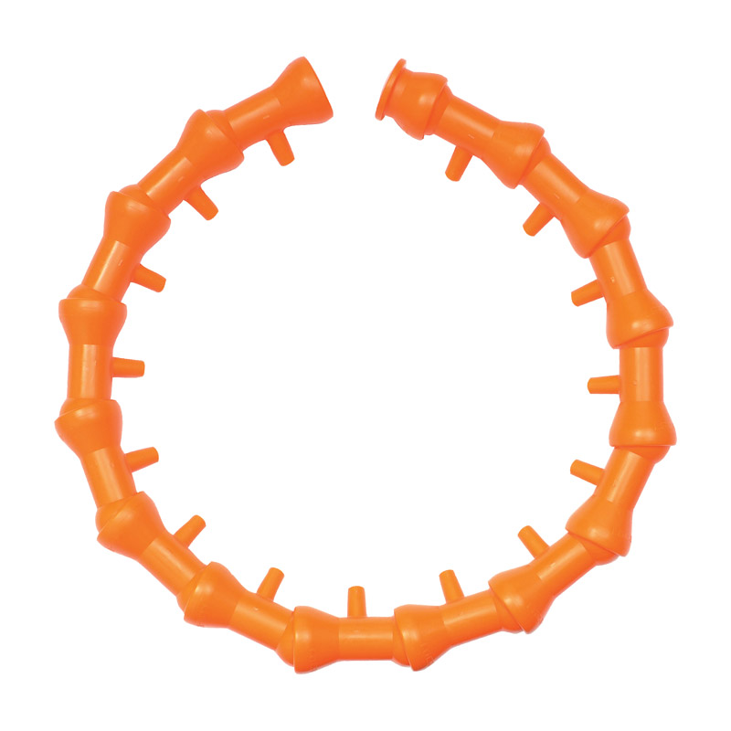 This kit is perfect for encircling a tool to provide complete coolant coverage. Features: Kit includes (15) 1/2" Side video Nozzles snapped together to create a circle nozzles, and (1) 1/2" End Cap. Nozzle kit can cover a large radius to cover multiple angles at once. Can be bent in a variety of positions. Utilized in a variety of application such as brew sparging, greenhouse, agriculture and food processing.