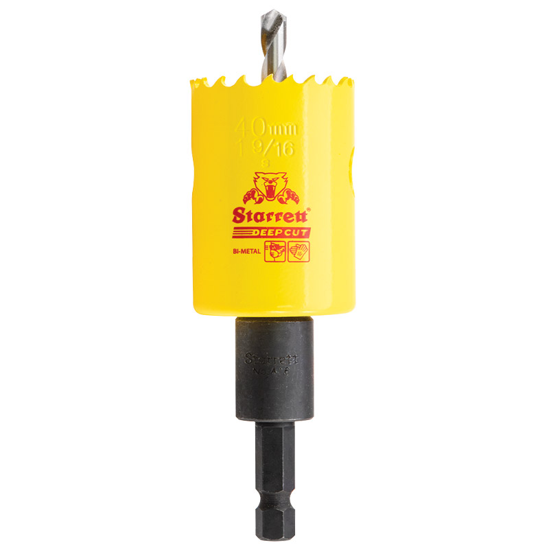 Dual Pitch Professional Hole Saws with Quickshot Arbor. Hardened, heat resistant, positive rake HSS teeth with alloy backing. Strong and shatter resistant. Economically cuts wood, metal and steel. For hand held or fixed drills.