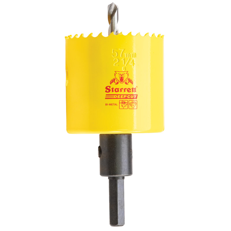 Dual Pitch Professional Hole Saws with Quickshot Arbor. Hardened, heat resistant, positive rake HSS teeth with alloy backing. Strong and shatter resistant. Economically cuts wood, metal and steel. For hand held or fixed drills.