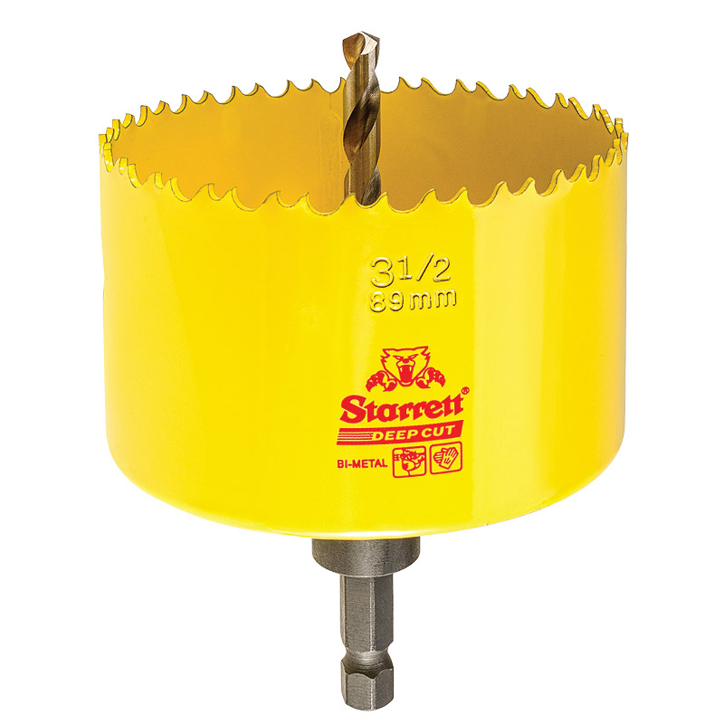 Dual Pitch Professional Hole Saws with Quickshot Arbor. Hardened, heat resistant, positive rake HSS teeth with alloy backing. Strong and shatter resistant. Economically cuts wood, metal and steel. For hand held or fixed drills.