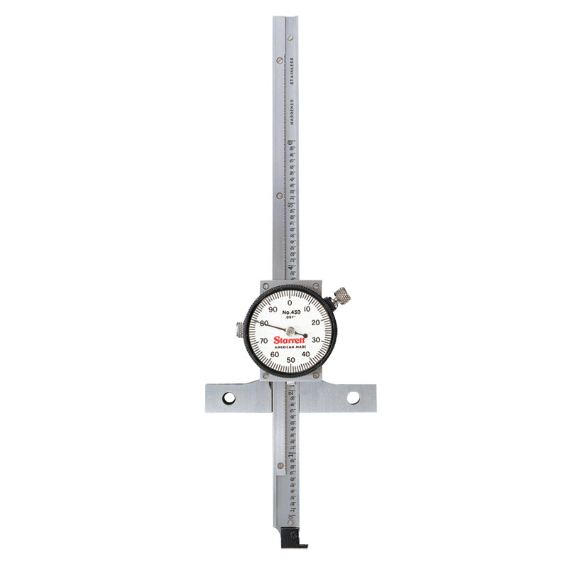 The Starrett 450 Dial Depth Gage is ideal for the individual mechanic. It is light, reliable and accurate for measurements to .001" and will fit into most toolboxes.