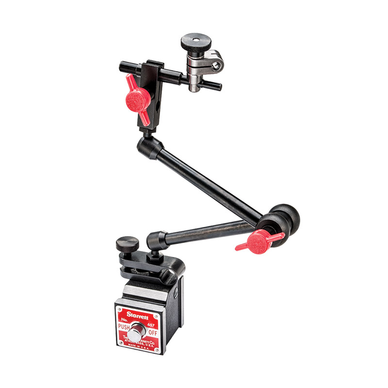 This versatile indicator holder has three pivots available for positioning the indicator where needed. All pivots are controlled by one tightening knob. Universal Indicator Holder with No. 657 with 657P/ 657S/PT17850.